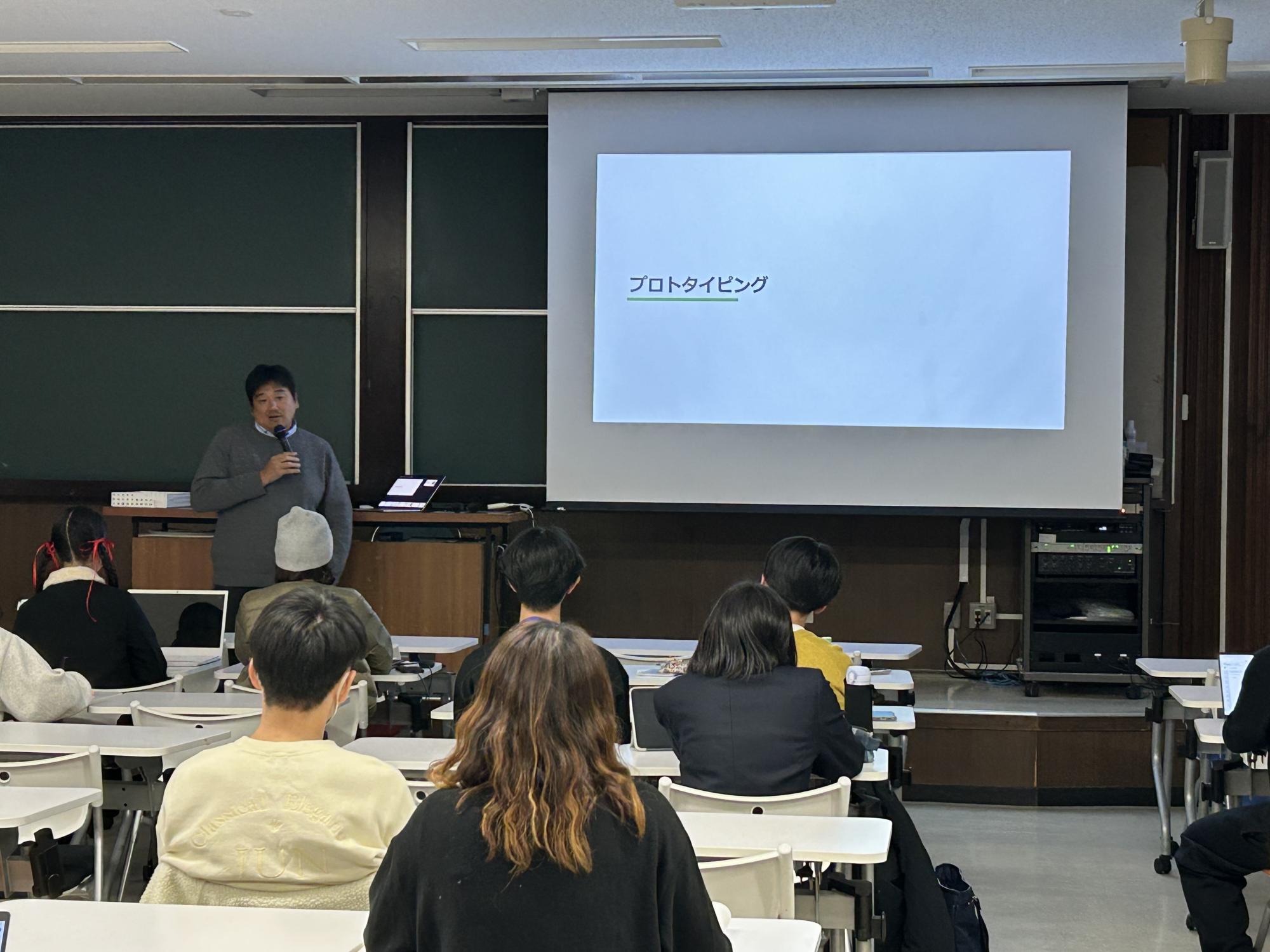 渡辺氏の特別講演に続き、総合プロデューサーの冨田欣和先生からは「プロトタイピング」についての講義がありました。